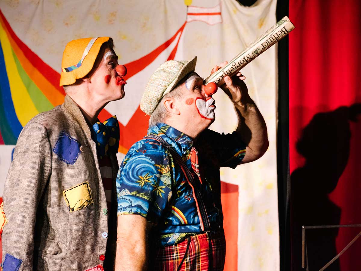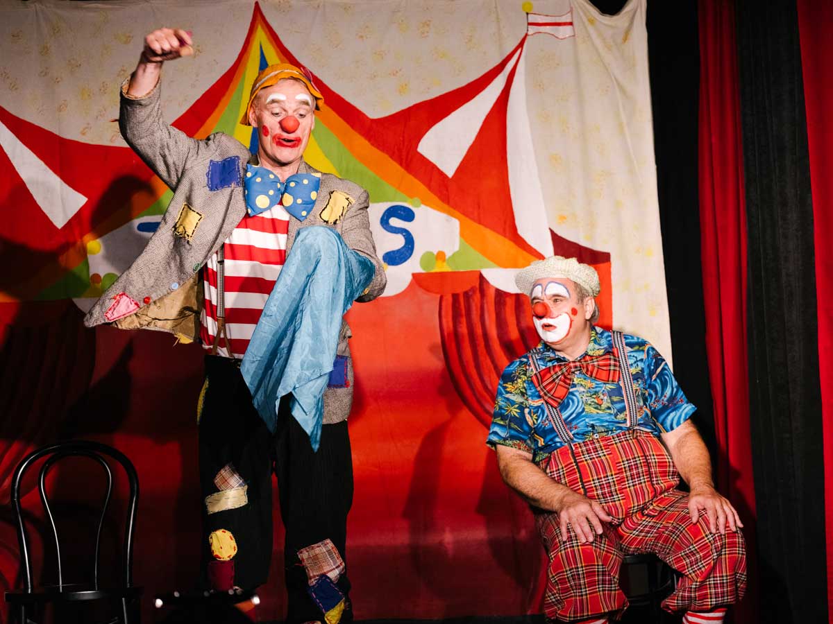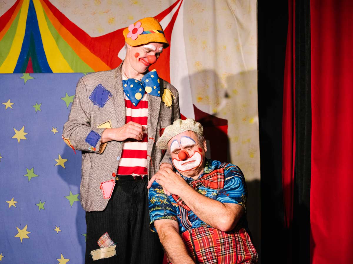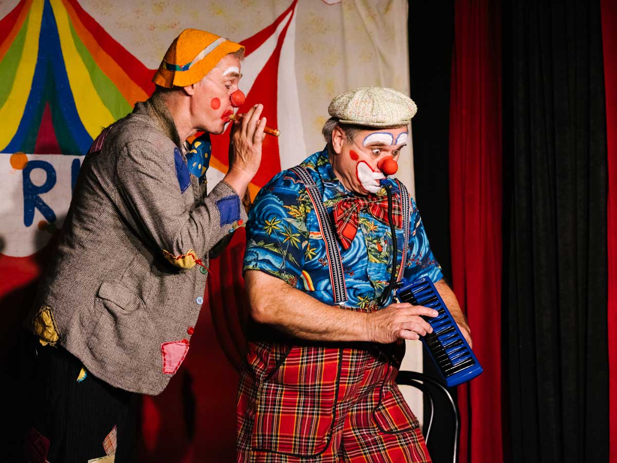 Lustiges ClowntheaterZwei Clowns, der Musiker Tui und der Zauberer Rata treffen sich und warten auf den Zirkusdirektor, der aber nicht kommt. Da beschließen sie, das Programm selbst zu gestalten. Ein unseliger Streit bricht aus, denn jeder will besser sein als der andere. In einem rührenden Schluss finden die beiden als Freunde wieder zusammen.